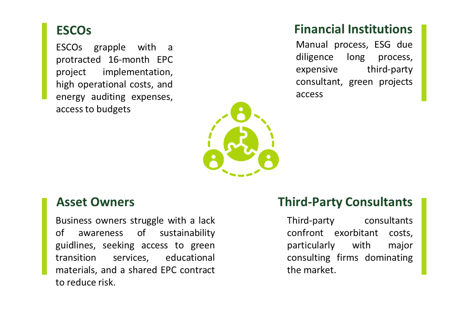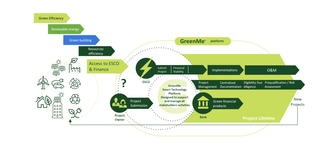 Our platform includes tendering & energy auditing by industry, ESCO & facility services and optimizing the client’s profitability. GreenMe aims to shorten the banking process involved in providing sustainable financing products from over 1.5 months to less than two weeks.